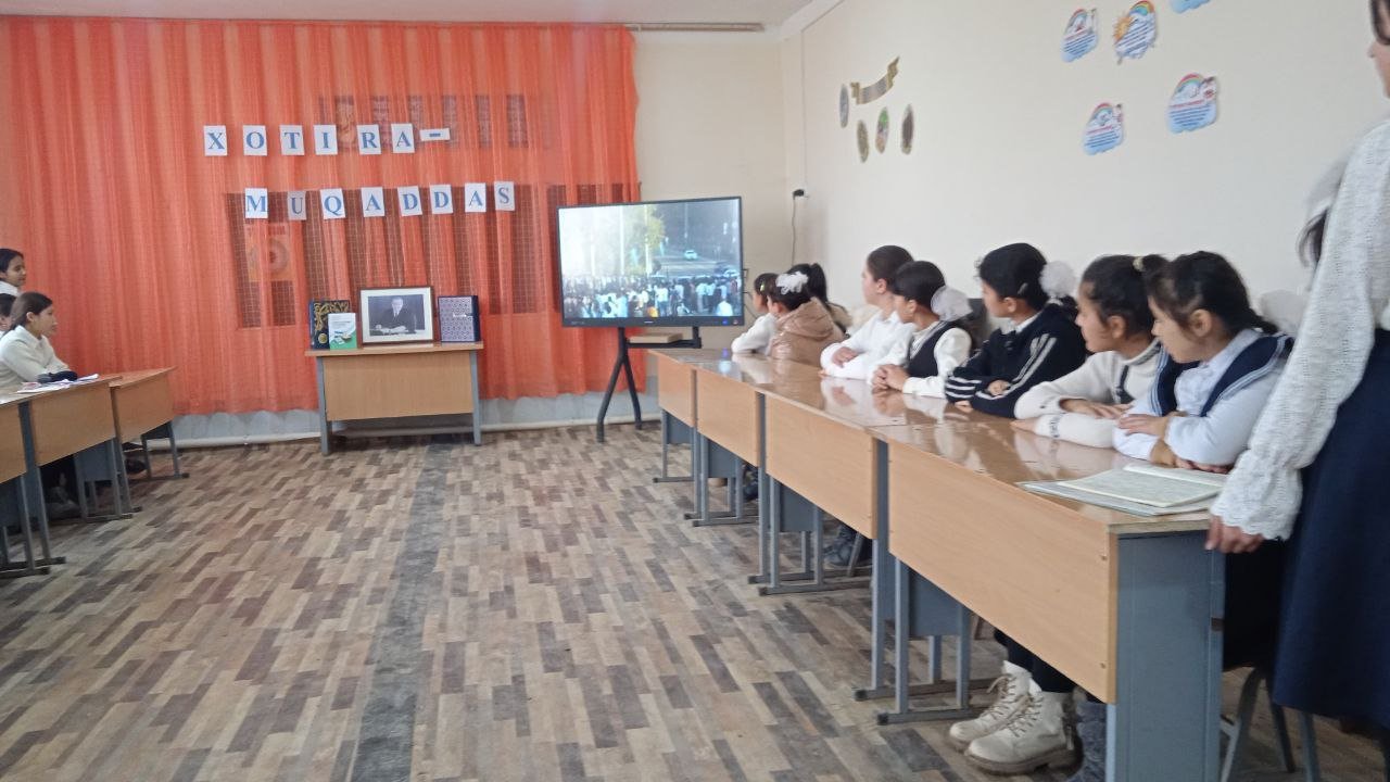 ,, Xotira - muqaddas " deb nomlangan tadbir o'tkazildi. Tadbirni MMIBDO' Q. Boyjonova ochib berdi. Tadbirda 6- sinf o'quvchilari ifodali she'r o'qidilar , raqs ijro qildilar, vidioroliklar namoyish qilindi.