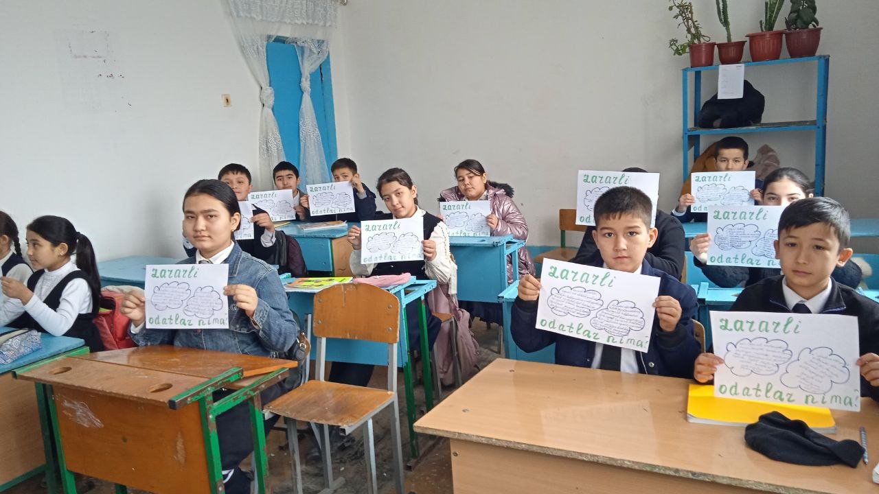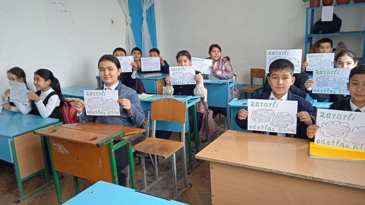 Xorazm viloyati Yangiariq tuman 28- son umumta'lim maktabida Fevral - ,, Biz zararli odatlarga qarshimiz " oyligi doirasida 5- a sinf o'quvchilari bilan,, Internet - qulaylikmi yoki xavf " mavzusida suhbat o'tkazildi, anketa so'rovnomasi hamda trening mashg'ulotlari o'tkazildi.